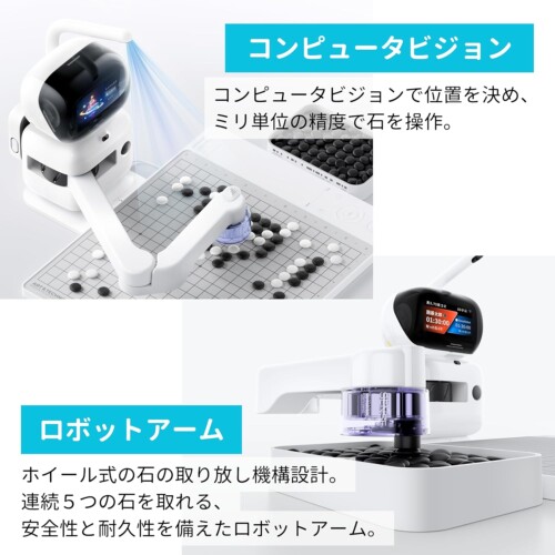 最先端のAI技術と家庭用ロボットアームを搭載し、まるで人と打っているかのようなリアルな対局体験を実現できるロボットです。